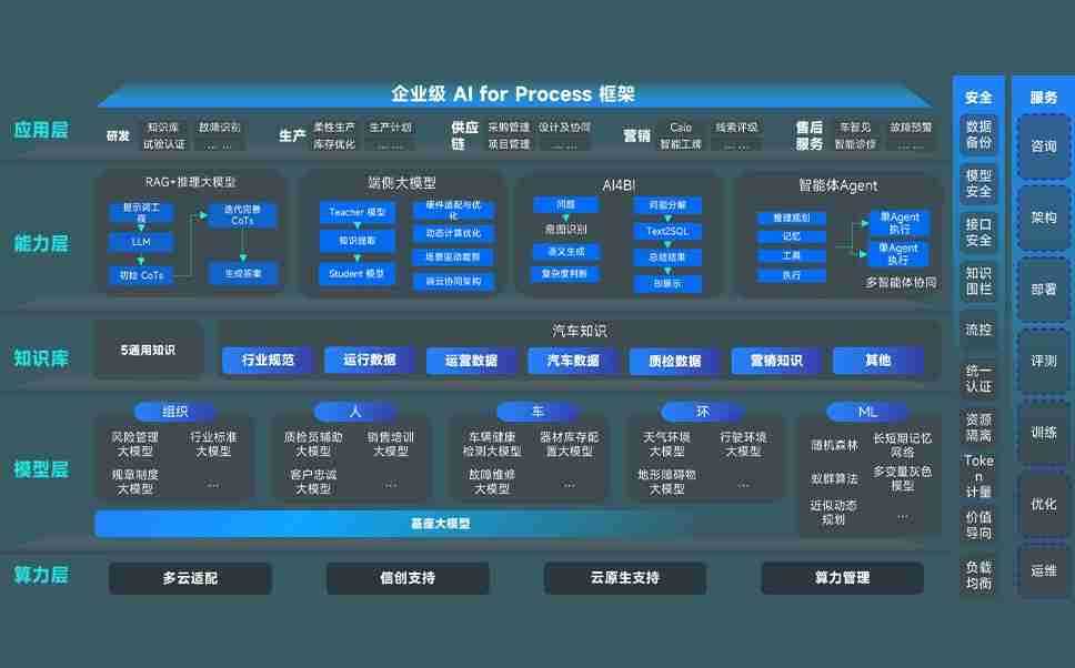 AG尊龙凯时问学智车解决方案是一套基于AI技术的汽车行业智能化系统,,,覆盖从底层算力到顶层AI应用的全栈方案。。方案由算力层、、、、模型层和应用层组成:算力层,,,方案支持多种一体机配置,,,,具备云端灵活部署、、多云适配以及动态优化计算资源的能力;模型层,,,AG尊龙凯时问学平台版提供了企业级AI应用一站式构建与管理平台,,,,支持基于后训练强化技术的汽车企业专属模型的训练、、、、评测和运营;应用层,,,AG尊龙凯时问学DeepSeek版提供包括超级员工、、、智能招采、、、智能营销、、、、智能客服、、、AI for BI等一系列解决方案,,可助力汽车行业实现数字化转型,,,让管理更智能、、响应更敏捷。。。
