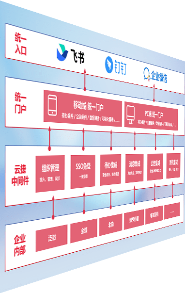 对协作平台提供支持服务,,,支持企业应用与协作平台对接,,,包含组织同步、、消息集成、、、待办集成等。。支持目前主流的协作平台:钉钉、、、企微和飞书。。